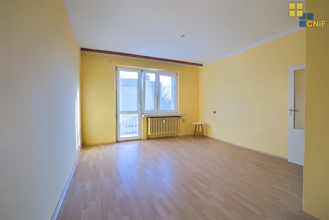 Duży pokój z balkonem i wnęką idealną do zabudowy .