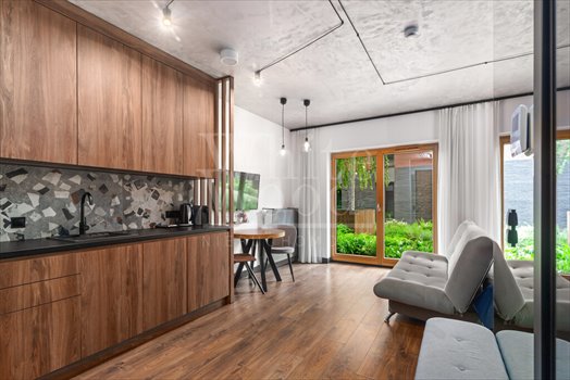 Układ mieszkania obejmuje część dzienną z aneksem kuchennym, wydzieloną strefę sypialnianą oraz łazienkę. Dodatkowym atutem usytuowanie na parterze, co zapewnia wygodę i łatwy dostęp.