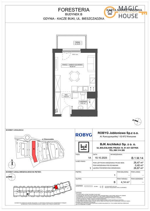 Kawalerka na sprzedaż Gdynia, Wielki Kack, Bieszczadzka - 26,47m2