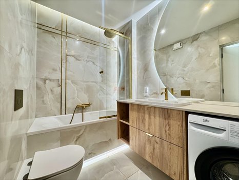 - W pełni wyposażona w AGD (lodówka, zmywarka, piekarnik, płyta indukcyjna, okap)