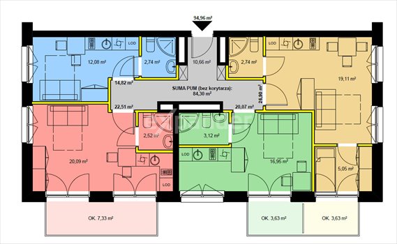 W sumie 96,72 m2 cena za m2- 9 600,00 zł Cena całego pakietu 928 512 PLN