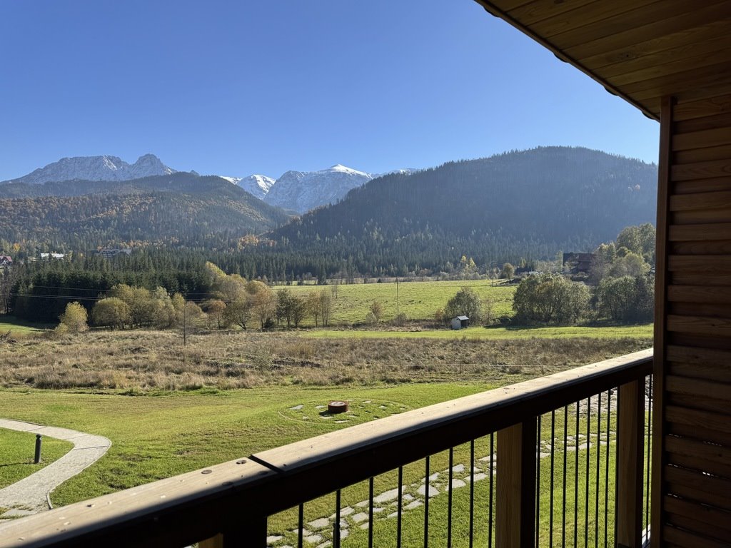 Widok z lokalu m.in. na Giewont.