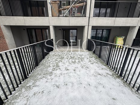 Do mieszkania przynależy bardzo duży taras, w jednej części wyłożony płytami betonowymi, a w drugiej trawnikiem.
