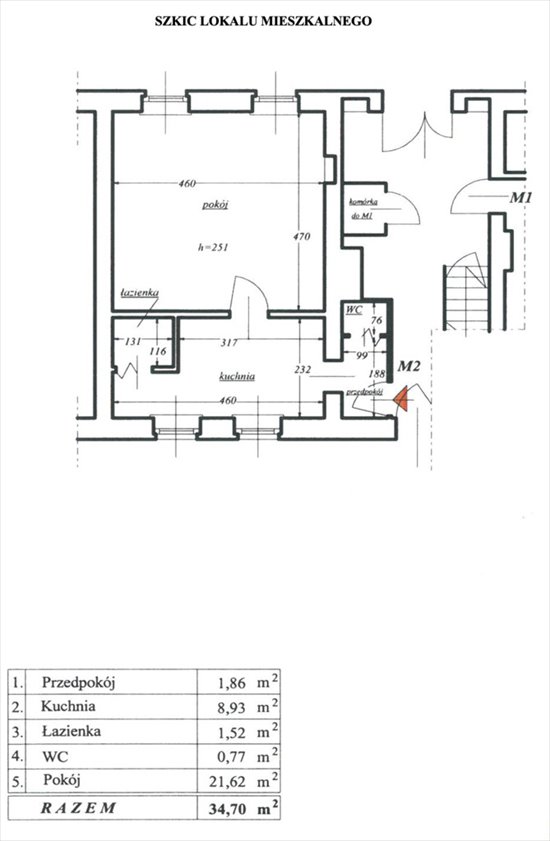 Powierzchnia lokalu: 34,70 m2