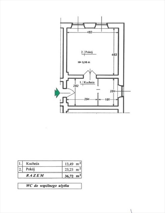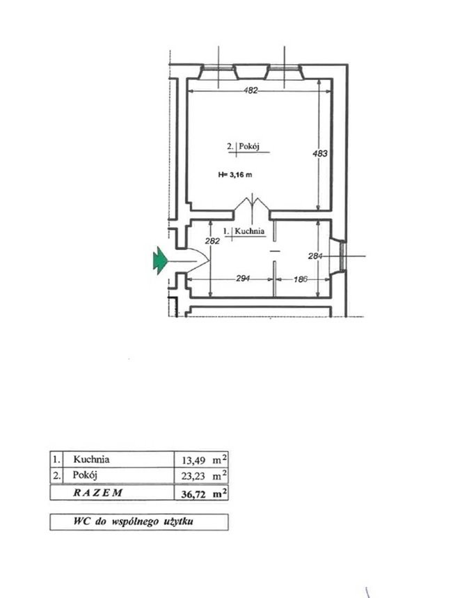 Lokal z uwagi na jego stan techniczny wymaga wykonania szeregu remontów umożliwiających korzystanie z lokalu do celów mieszkaniowych. W pokoju znajduje się niesprawny piec kaflowy. Kuchnia została przedzielona drewnianym przepierzeniem – ścianką działową. Brak wentylacji nawiewno-wywiewnej. Okna w lokalu drewniane, skrzynkowe, bardzo zniszczone – do wymiany. Drzwi płytowe, drewniane, zniszczone- do wymiany. Ściany i sufity w lokalu tynkowane i malowane. Na podłogach w lokalu płyta OKL malowana. WC do lokalu, wspólnie z innymi lokatorami znajduje się na korytarzu klatki schodowej. Budynek był zalany w trakcie powodzi we wrześniu 2024 r (piwnice i parter).