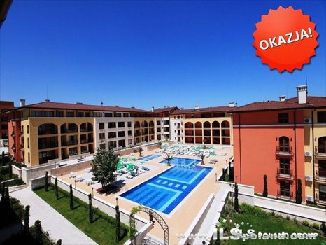 Przestronny apartament z wyodrębnioną sypialnią oraz umeblowaniem i wyposażeniem, a także z widokiem na morze w mega okazyjnej cenie, w luksusowym, całorocznym kompleksie GALERIA z pięknymi ogrodami i dużym basenem, tylko 950 m od plaży w malowniczej miejscowości Obzor nad Morzem Czarnym w Bułgarii.