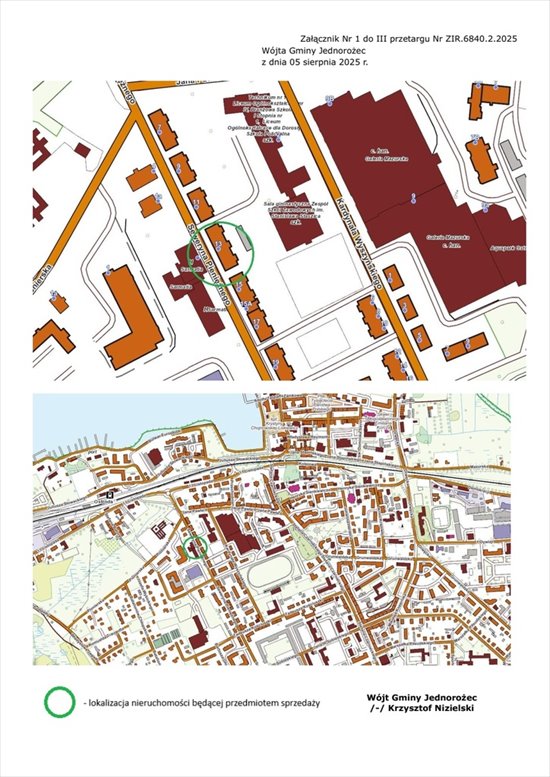 I. Sprzedaż nieruchomości nastąpi za najwyższą cenę osiągniętą w przetargu, który odbędzie się w sali konferencyjnej Urzędu Gminy w Jednorożcu, ul. Odrodzenia 14, w dniu 11 grudnia 2025 r., o godz. 10.00.