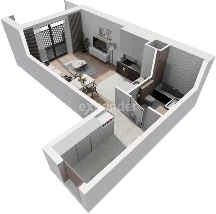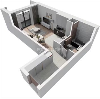 ✓ pokój dzienny z aneksem kuchennym 22,73m²,
