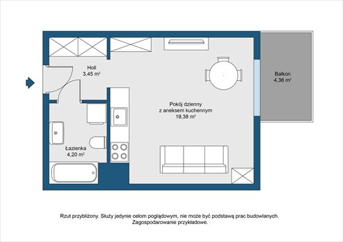 - Balkonu 4,36 m² z przeszkleniami, gdzie można wypić poranną kawę lub odpocząć po pracy.