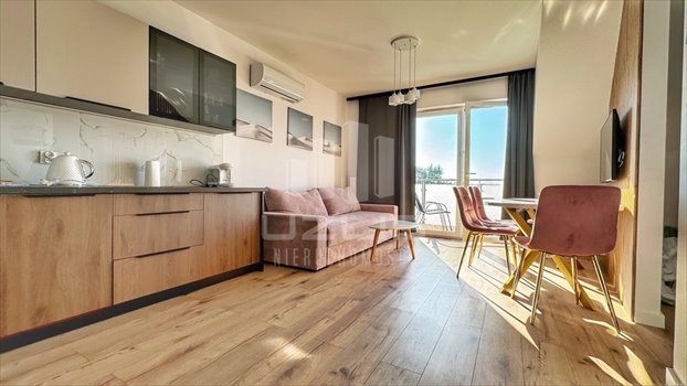 Mieszkanie jasne, przestronne, pięknie doświetlone, z zachodami słońca, o wysokim standardzie wykończenia. Składa się z salonu z wyjściem na balkon, kuchni otwartej na salon, wydzielonego kącika sypialnianego, przedpokoju oraz łazienki. Mieszkanie urządzone, zabudowy meblowe wykonane na wymiar. W aneksie wyposażenie AGD: lodówko-zamrażarka w zabudowie, płyta indukcyjna, zmywarka. Łazienka z prysznicem, z odpływem liniowym, bateria z deszczownicą, misa ustępowa podwieszana, umywalka nablatowa z pojemną szafką z szufladami, dodatkowa szafka w zabudowie na toaletą. W sypialni pojemna komoda. W przedpokoju kryta szafa.
