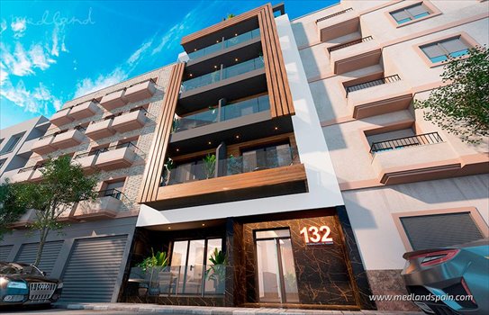Just 250 metres from Playa del Cura, these apartments in Torrevieja offer an ideal setting for enjoying the Mediterranean lifestyle. This residential complex combines modern architecture with practical design, providing a comfortable base close to the sea and all amenities. The seafront promenade, lined with cafés and restaurants, invites you to stroll by the sea, while a wide range of sports facilities and water activities are available nearby. Everyday essentials, shops and supermarkets are within easy reach, making it an excellent choice for both holiday living and year-round residence.The development features one-bedroom apartments on the ground floor and two-bedroom apartments and penthouses on the upper levels. The penthouses stand out for their private solarium, part of a shared rooftop terrace that enjoys panoramic views of the town and the coastline. All homes include interior LED downlighting and exterior terrace lighting, video intercom, and pre-installation for ducted air conditioning, ensuring comfort and efficiency throughout the year.Residents can enjoy communal areas designed for leisure and wellbeing, including a rooftop terrace, an open-air swimming pool with a separate section for children, and a gym located on the ground floor. The building’s central patio creates a bright and airy feel, connecting all levels from the ground floor to the roof.The location is particularly convenient for those who prefer to move around without a car: the Torrevieja bus station is just a five-minute walk away, offering regular connections to Alicante Airport and to destinations such as Zenia Boulevard in Orihuela Costa, as well as the Habaneras shopping centre here in Torrevieja. For drivers, the road network is excellent, with Alicante Airport approximately 45 minutes away and Murcia Airport around one hour by car.