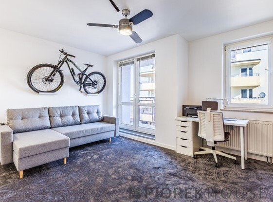 - Aneks kuchenny - meble i wyposażenie dwuletnie, w tym zabudowana lodówka z osobną zamrażarką, płyta indukcyjna, piekarnik.