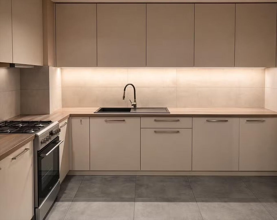 - Kuchnia - szafki w zabudowie, wyposażona w AGD.
