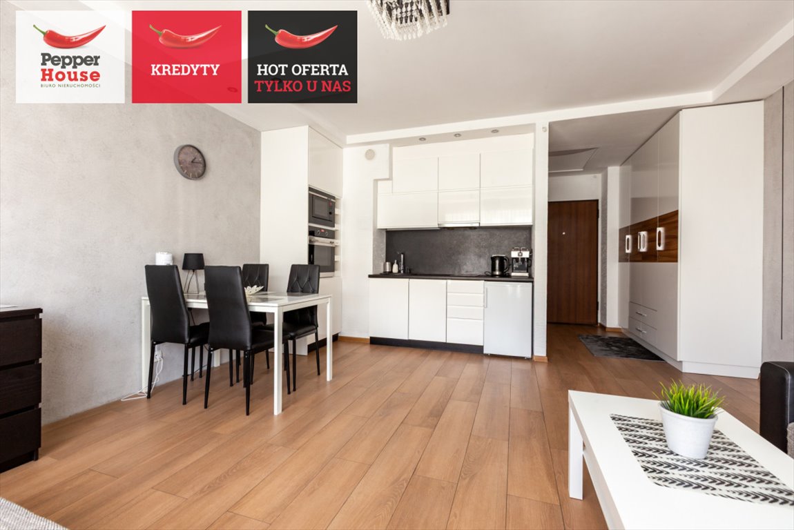 Aneks kuchenny wyposażony został w meble w zabudowie oraz pełny sprzęt AGD, a całe wnętrze utrzymane jest w nowoczesnym, gustownym stylu.