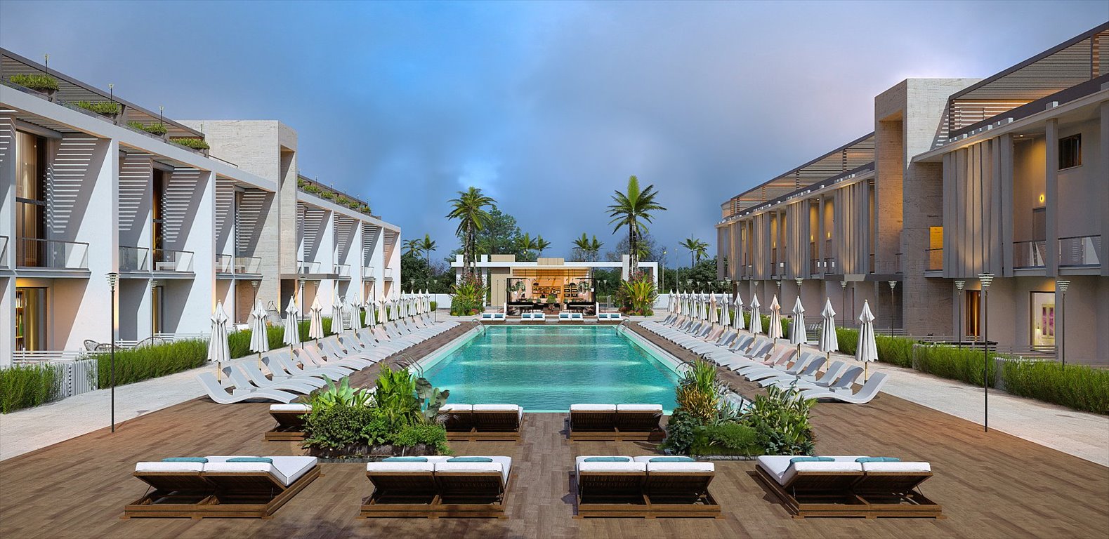 Projekt składa się z siedmiu dwupiętrowych bloków, w których łącznie znajdą się 152 mieszkania. Przy wejściu znajduje się szlaban i budka ochrony. W zagospodarowanym ogrodzie znajduje się wiele udogodnień, takich jak wspólne baseny, centrum odnowy biologicznej, spa, sauna, łaźnia turecka, siłownia, łaźnia parowa, gabinet masażu, restauracja, bar z przekąskami i kawiarnia. Do projektu należy również prywatny klub plażowy. Na terenie kompleksu znajduje się również system generatorów i system kamer bezpieczeństwa do wspólnego użytku. Do każdego mieszkania przynależy miejsce parkingowe.