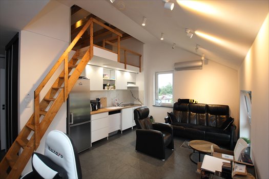 - sypialni, która mieści się na antresoli i nie jest wliczona w metraż mieszkania