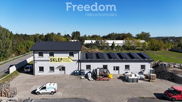 Cała nieruchomość została wzniesiona w 2022 roku. Budynek jest ocieplony, wykończony tynkiem mineralnym, a na dachu zamontowano instalację fotowoltaiczną o mocy 9,7 kW. Obiekt wyposażono w pełny monitoring, system alarmowy oraz ogrzewanie gazowe w postaci grzejników i nawiewów. Na parterze funkcjonuje obecnie sklep z materiałami budowlanymi i ogrodniczymi, natomiast na piętrze znajdują się pomieszczenia biurowe. Istnieje możliwość zakupu nieruchomości wraz z działającym biznesem i zatowarowaniem. Cena podana w ogłoszeniu jest kwotą netto i podlega niewielkiej negocjacji.