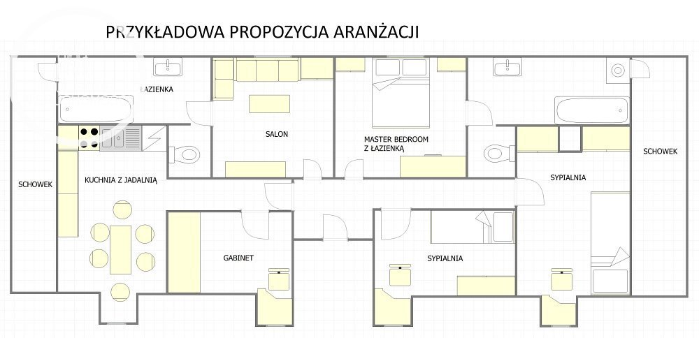 W ofercie znajdą Państwo aktualny rozkład pomieszczeń oraz przykładową aranżację wnętrza, która może stanowić inspirację do własnego projektu.