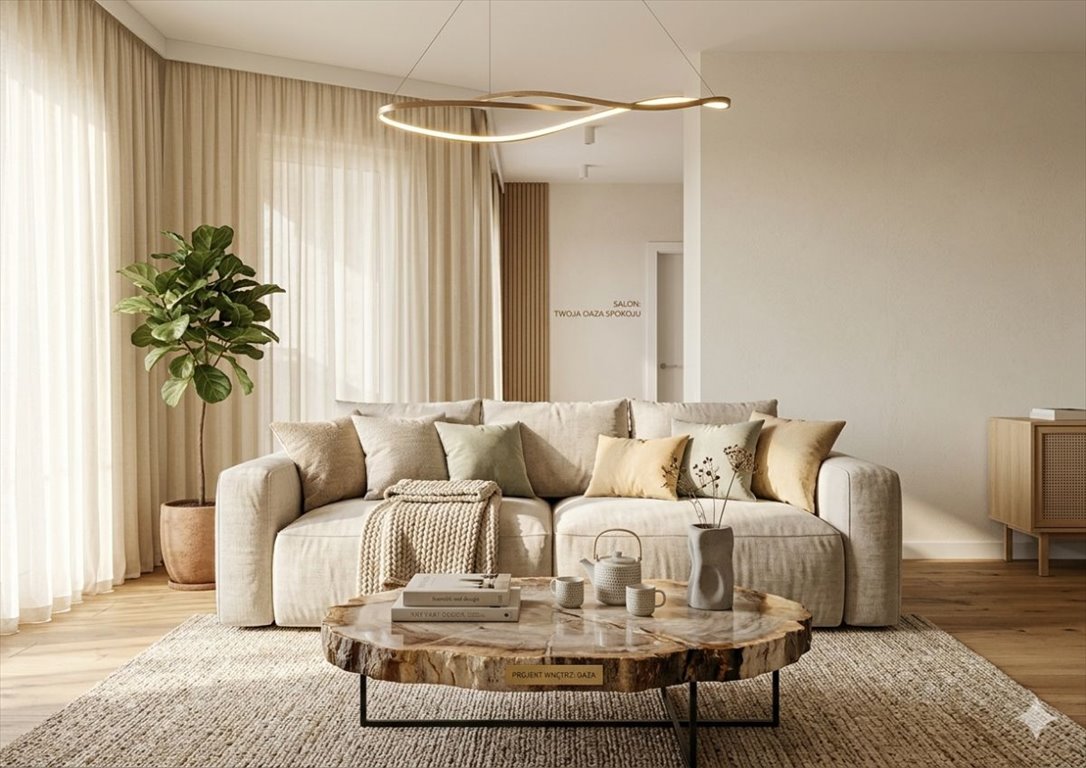 Dwupoziomowy układ pozwala naturalnie oddzielić strefę dzienną od prywatnej — komfortowe rozwiązanie dla rodzin lub osób pracujących zdalnie.