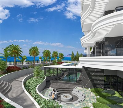 Mieszkania nad Morzem w Kompleksie Hotelowym z Architekturą w Stylu Hollywood w Alanyi Kestel