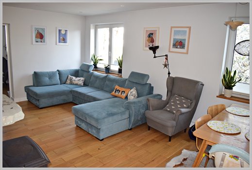 * Na ścianach gładzie oraz częściowo tapeta ( w komunikacji ), podłoga w pokojach drewniana ( w pokoju dziennych oraz kuchni deska barlinecka ), w łazience płytki.