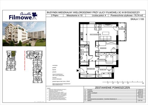 Przestronne 4-pokojowe mieszkanie na sprzedaż w Bydgoszczy Bydgoszcz, Bartodzieje Małe, Filmowa - 70,74m2