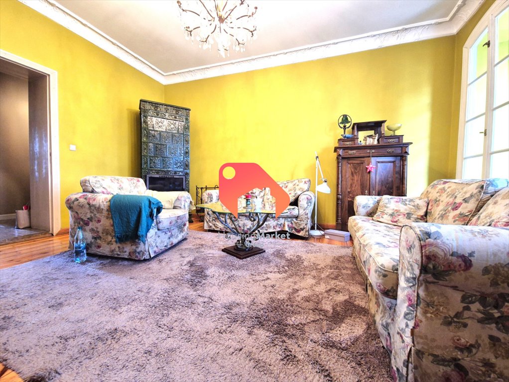 1/ salonu (ok.25m2) z przeszklonym wykuszem wychodzącym na ulicę, w pomieszczeniu piękny, oryginalny kominek, sprawny i co zimę używany przez mieszkańców;