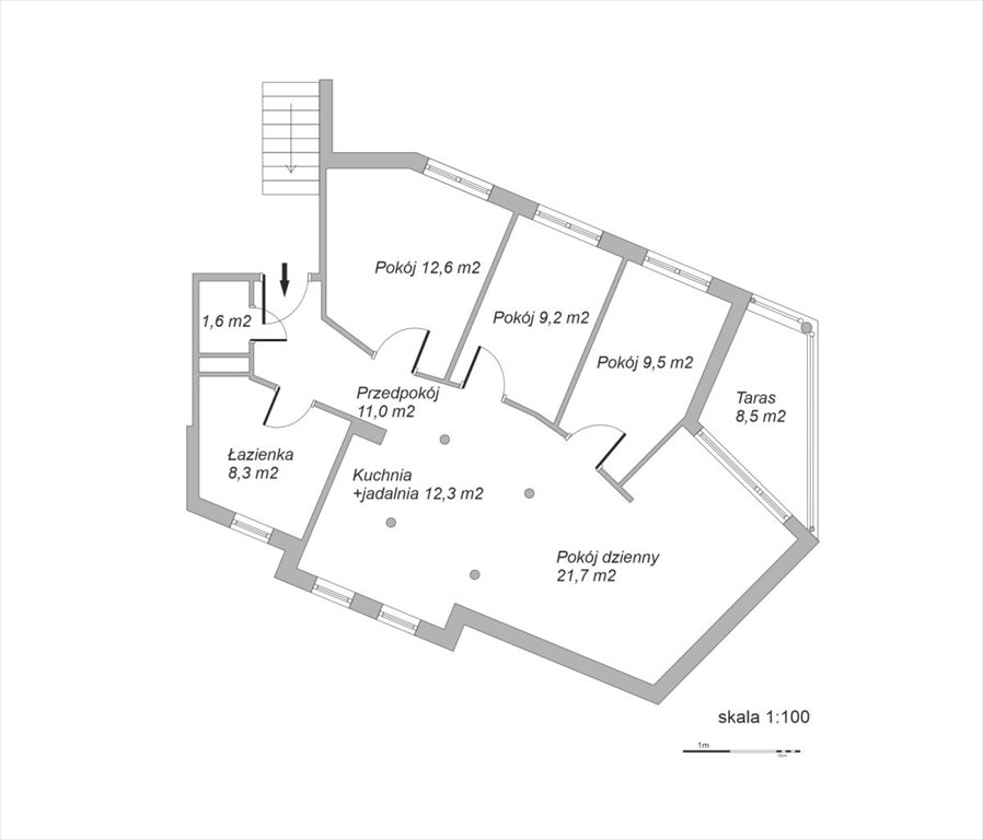 - Trzy niezależne pokoje - 12,6 m² | 9,2 m² | 9,5 m²