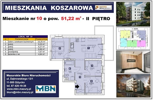 6 mieszkań dwupokojowych (1 x parter, 2 x I piętro, 2 x II piętro oraz 1 x III piętro).