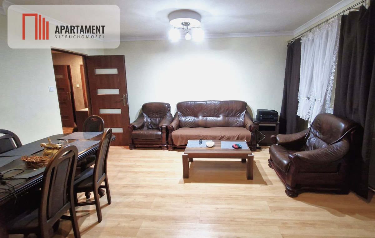 Mieszkanie sprzedawane jest w całości z umeblowaniem i sprzętami, co oznacza realną oszczędność czasu i kosztów. W cenie pozostają m.in. kuchenka, lodówka, pralka, telewizor, stół z sześcioma krzesłami, zabudowy szaf oraz skórzana sofa i dwa fotele.