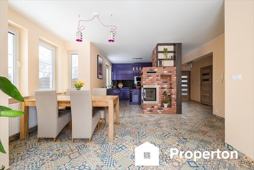 Kuchnia została wykonana na wymiar i jest w pełni wyposażona. W cenie pozostaje cała zabudowa wraz ze sprzętem AGD: lodówką, kuchenką gazową, piekarnikiem, zmywarką oraz mikrofalówką. W salonie znajduje się kominek, który nadaje wnętrzu wyjątkowy klimat i tworzy przyjemną aurę, szczególnie w chłodniejsze dni.