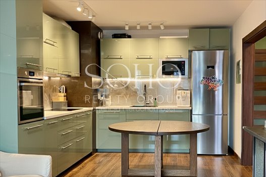 kuchnia w pełni wyposażona: systemy Blum, piekarnik, zmywarka, płyta indukcyjna, mikrofalówka, lodówka - Sypialnia główna z miejscem na gabinet – 19 m²