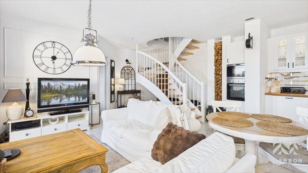 Dwupoziomowy układ - część dzienna na dole, prywatna na górze - komfort jak w domu.