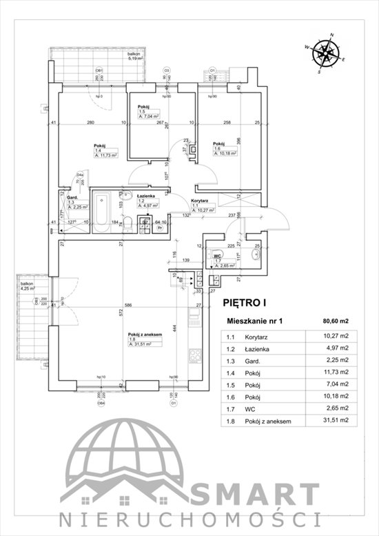 Funkcjonalny apartament na trzy strony świata. Salon z aneksem kuchennym, 3 sypialnie, garderoba, oddzielna łazienka i toaleta, dwa balkony. Mieszkanie znajduje się na 1 piętrze. Do lokalu można dokupić zewnętrzne miejsce postojowe na ogrodzonym terenie bezpośrednio przed klatką schodową lub prawdziwy garaż (około 15 m2). Koszt odpowiednio to: 20 tys. lub 80 tys. złotych.