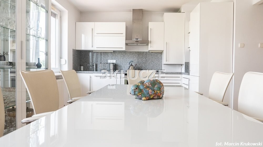 Cztery pokoje, trzy z wyjściem na balkon. Otwarta kuchnia z jadalnią, zabudowa meblowa i sprzęt AGD. Łazienka z wanną i prysznicem. Oddzielne WC. Łazienka/pralnia z WC. Dwa przedpokoje. Do mieszkania przynależy piwnica 9,7m2 i garaż 15,9m2. Cena garażu 55tys. zł.