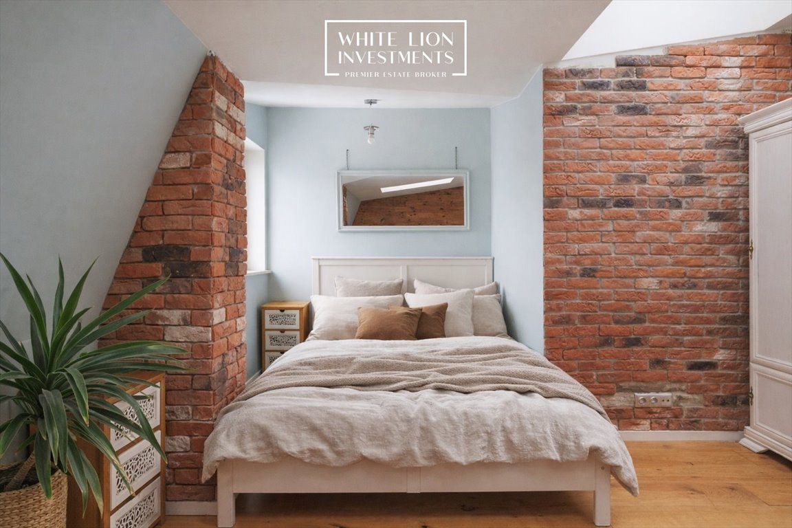 • Ściana z oryginalnej, 100-letniej cegły rozbiórkowej w salonie