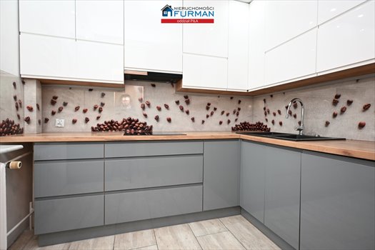 - kuchnia o pow. ok. 7m2. W kuchni zabudowa na wymiar z płytą indukcyjną, piekarnikiem elektrycznym, zmywarką
