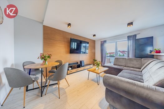 Przestronny salon z aneksem kuchennym i wyjściem na piękny balkon - serce domu, idealne do wypoczynku i spotkań rodzinnych.