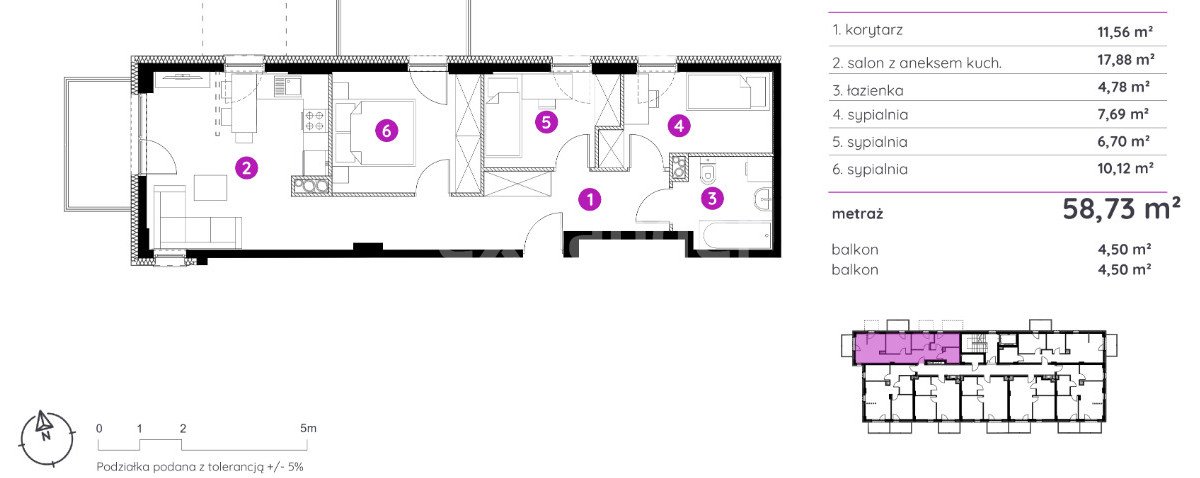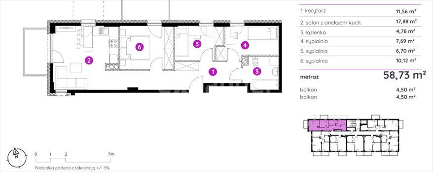 - Powierzchnia całkowita59 m2
