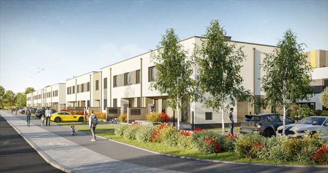 Inwestycja znajduje się na obszarze o niskiej zabudowie na NOWOCZESNYM OSIEDLU mieszkań szeregowych o WYSOKIM STANDARDZIE.