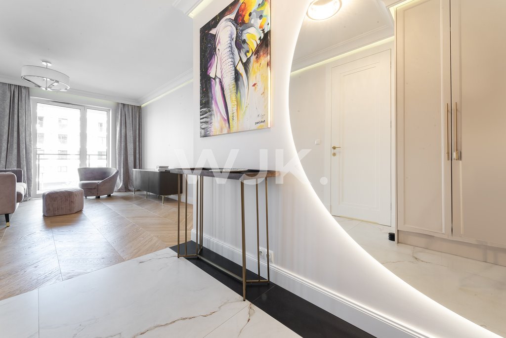 Mieszkanie wykończone w standardzie premium. Kamienne blaty w kuchni i łazienkach nadające wnętrzom elegancji. Podłogi z hiszpańskiego gresu oraz drewniana deska. Meble wykonane na zamówienie. AGD znanych marek, klimatyzacja. Mieszkanie projektowane przez architekta.