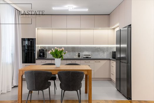 - Kuchnia: W pełni wyposażona w wysokiej klasy sprzęt AGD oraz liczne szafki z dużą ilością miejsca do przechowywania. Stylowy design oraz przestronność kuchni sprawiają, że jest to perfekcyjna przestrzeń do gotowania i wspólnego spożywania posiłków.