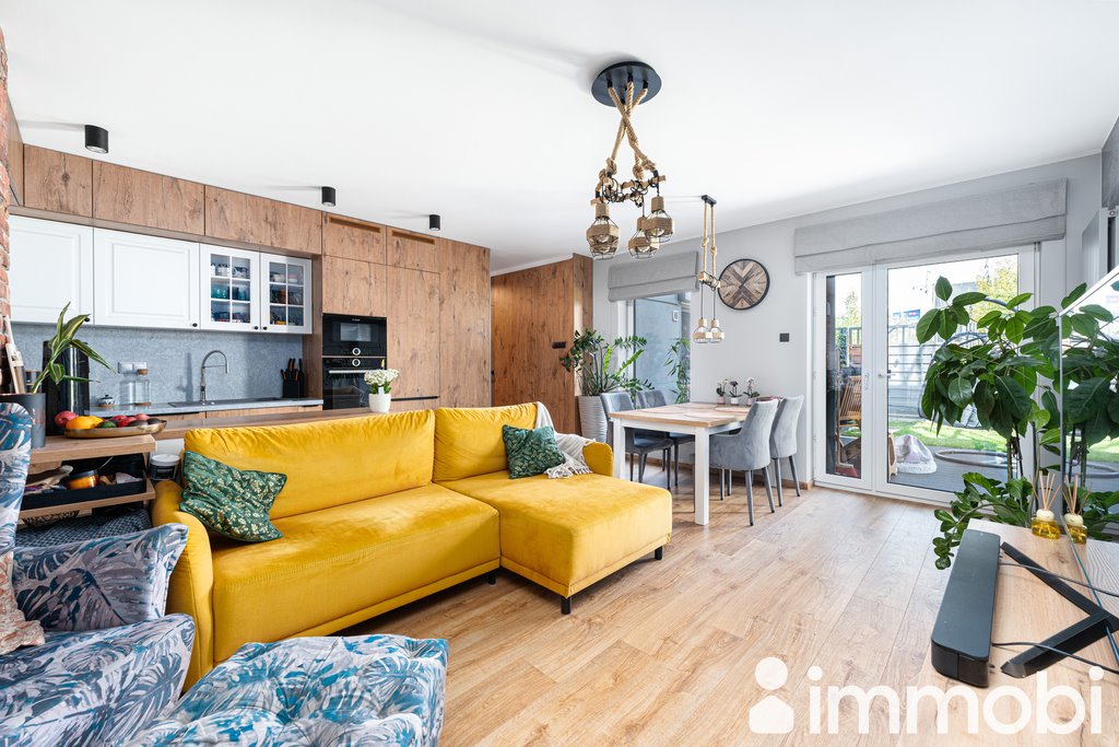Z salonu wyjdziemy do prywatnego ogrodu (o powierzchni aż 100m2) z tarasem, który stanowi idealną przestrzeń do relaksu, spotkań w gronie rodziny i przyjaciół, a także bezpieczną strefę zabawy dla dzieci.