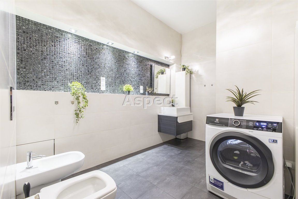 łazienka z WC - eleganckie, przestronne pomieszczenie wyposażone w prysznic, WC, bidet, umywalkę, lustro z oświetleniem.