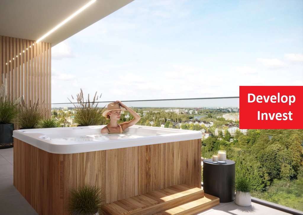 Każdy apartament posiada przestronny, przeszklony taras o powierzchni od 10 do 37 m², a komfortową komunikację między kondygnacjami zapewniają cichobieżne windy.