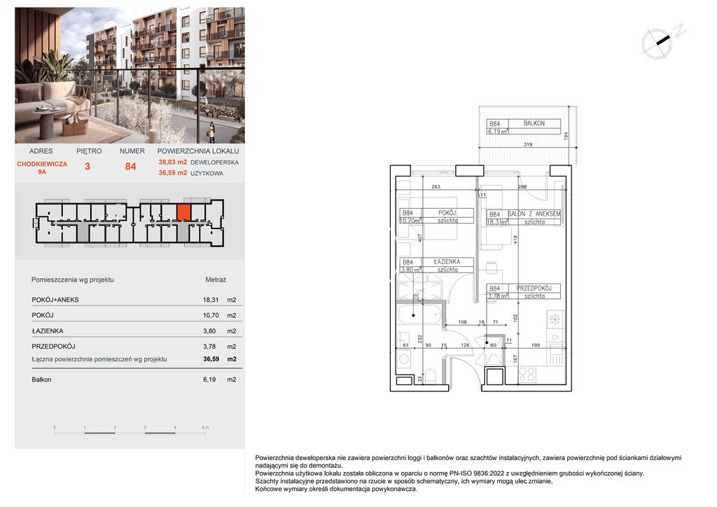 Przestronne 2-pokojowe mieszkanie w Bielawach, 36,43 m2 Bydgoszcz, Bielawy, Jana Karola Chodkiewicza - 36,43m2