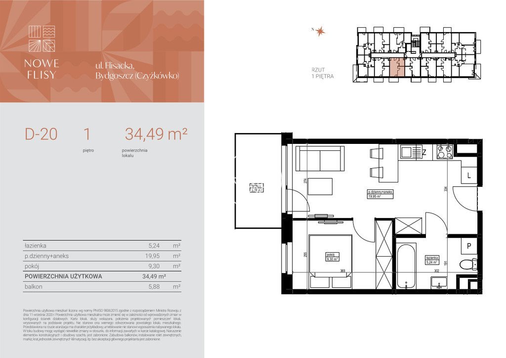 Atrakcyjne 2-pokojowe mieszkanie na sprzedaż w Czyżkówku Bydgoszcz, Czyżkówko, Flisacka - 34,28m2