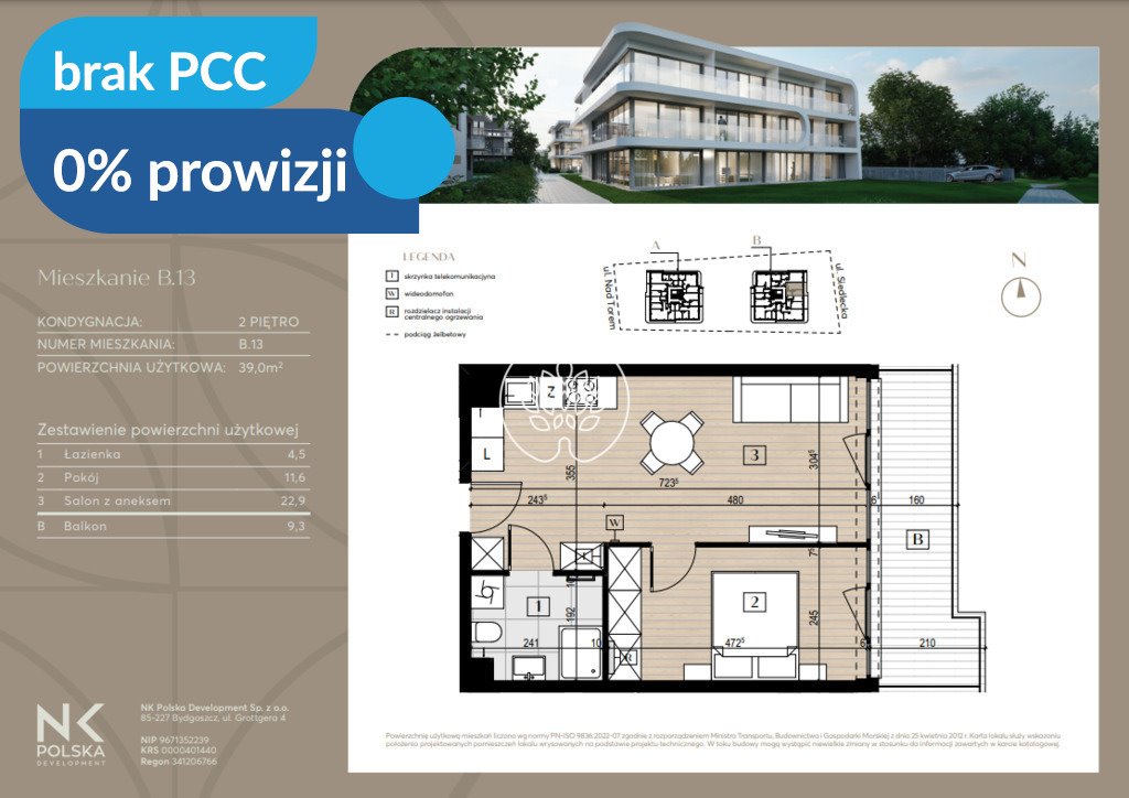 Nowoczesne 2-pokojowe mieszkanie z balkonem w Czyżkówku Bydgoszcz, Czyżkówko, Siedlecka - 39,0m2