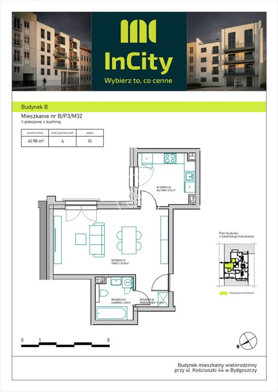 Dwupokojowe mieszkanie w Śródmieściu Bydgoszczy, 43,1 m2 Bydgoszcz, Śródmieście, Tadeusza Kościuszki - 43,1m2