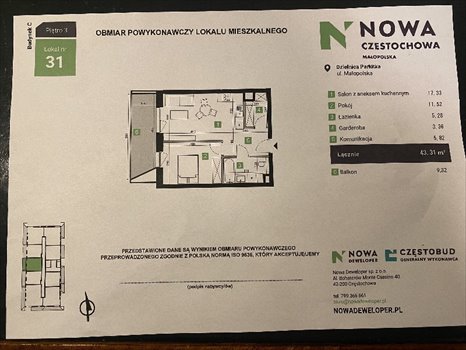 NOWE, w stanie deweloperskim, z bardzo dobrym rozkładem poieszczeń, z wyjściem na duży taras o powierzchni 9,32m.